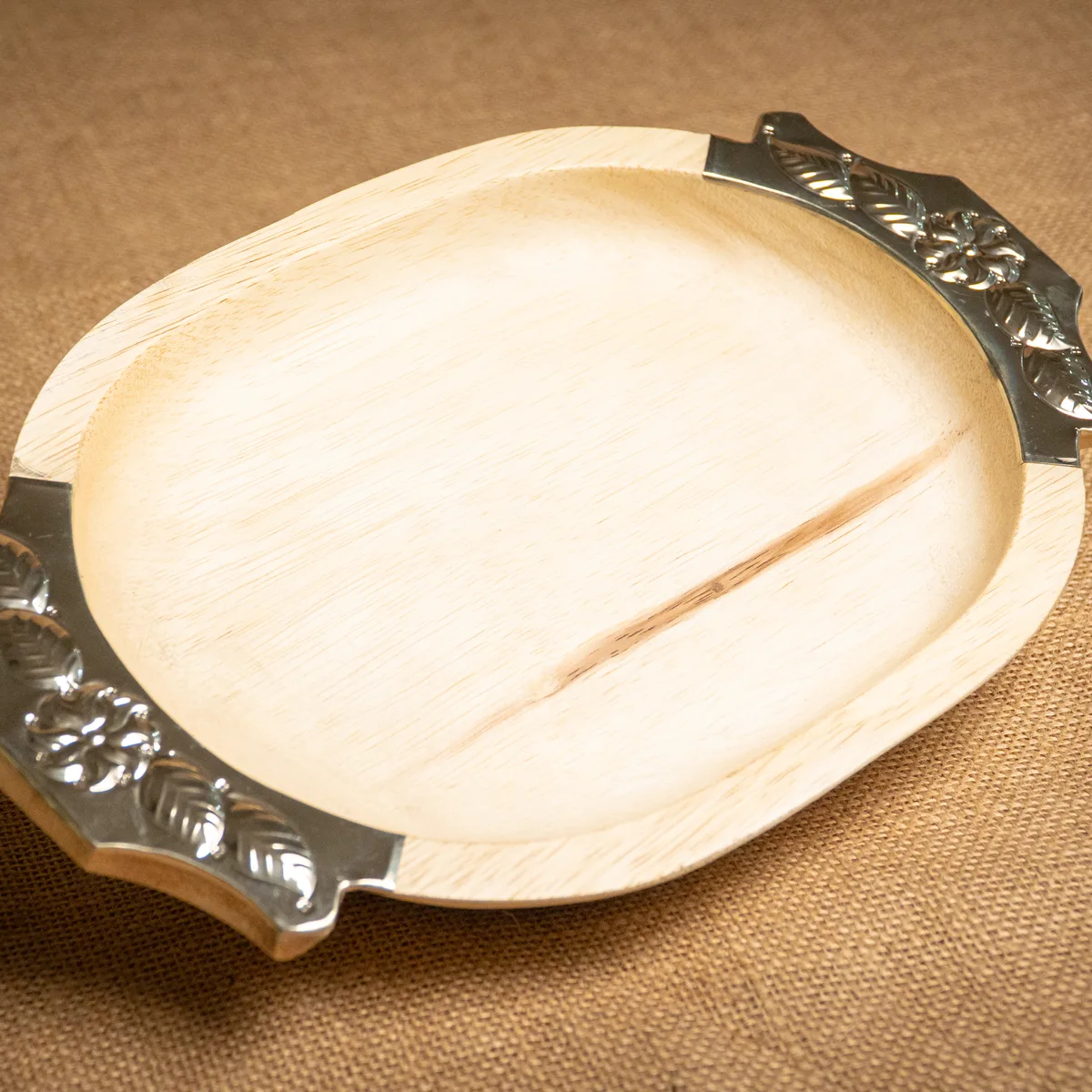 Batea de madera de pacará de 35×25 cm, diseñada específicamente para servir comida con un estilo rústico y distinguido. Su estructura robusta aprovecha la resistencia y la veta característica del pacará, ofreciendo una superficie profunda ideal para carnes, guarniciones o presentaciones de mesa en formatos medianos. Cuenta con manijas laterales con incrustaciones de alpaca, que combinan la calidez de la madera con un detalle de orfebrería artesanal para un agarre firme y elegante. Al ser una pieza fabricada de forma manual, cada batea presenta tonalidades y texturas únicas que resaltan su origen natural y artesano. Es un objeto funcional y de gran categoría, perfecto para quienes buscan calidad y diseño regional en su servicio gastronómico. Si el producto no cumple con tus expectativas, podés realizar el cambio por cualquier otro artículo.