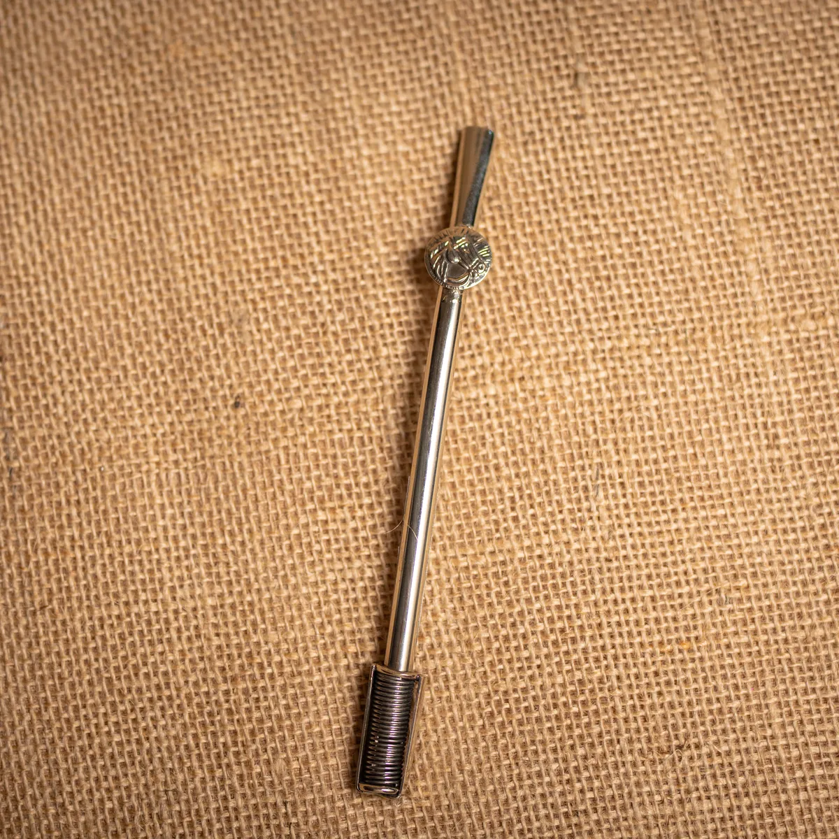 Bombilla de Alpaca con Apliques Varios. Esta bombilla combina versatilidad y detalle artesanal, ofreciendo una opción personalizada para cada cebador. Está íntegramente fabricada en alpaca de primera selección, material que garantiza una larga vida útil y mantiene la pureza del sabor de la yerba en cada mate. Con un largo total de 15 cm, su caño liso está decorado con una variedad de apliques artesanales (motivos patrios, florales o tradicionales) que permiten identificar y distinguir tu equipo matero con estilo. Cuenta con un sistema de filtro de resorte de alta precisión que asegura una excelente circulación del agua, evitando el paso de polvillo y facilitando su limpieza habitual. Al ser piezas con terminaciones manuales, el diseño específico y los relieves del aplique pueden presentar variaciones naturales, certificando su carácter auténtico y exclusivo. Este modelo es ideal para quienes buscan un detalle único en su set; para consultar los motivos de apliques disponibles actualmente, no dudes en contactarnos. Si la pieza no cumple con tus expectativas, podés realizar el cambio por cualquier otro artículo de nuestra línea.