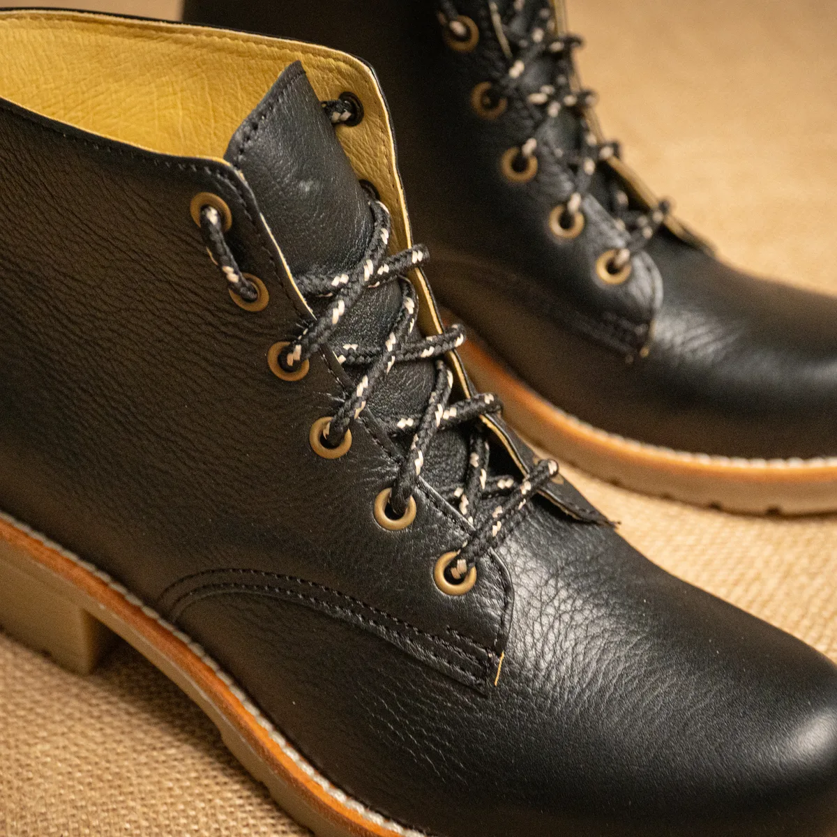 Borcego con Cordones. Confeccionado en cuero vacuno, se destaca por su estructura firme y diseño funcional, pensado para ofrecer comodidad y buena resistencia en el uso diario. Cuenta con cordones en el frente, que permiten un mejor ajuste al pie, y suela de goma, que brinda mayor agarre y estabilidad al caminar. Medidas: 10 cm de largo de la caña, 12 cm de ancho de la caña y taco de 4 cm de alto. Al tratarse de cuero natural, puede presentar variaciones de tono y textura respecto a la foto, propias del material. Si no te gusta, podés cambiarlo por otro producto.