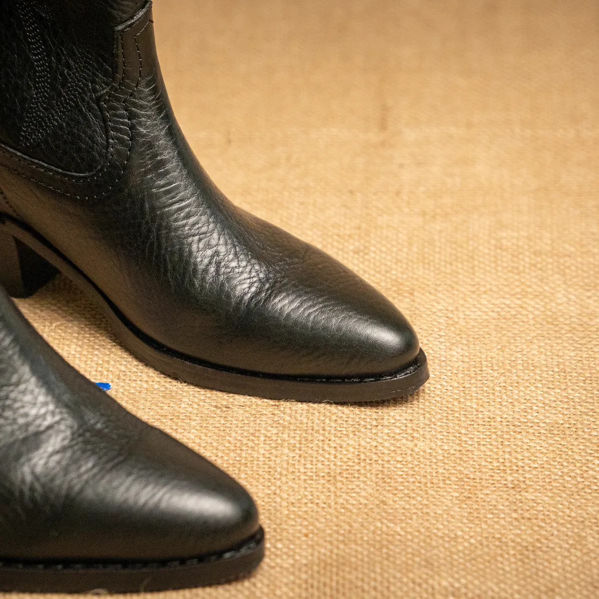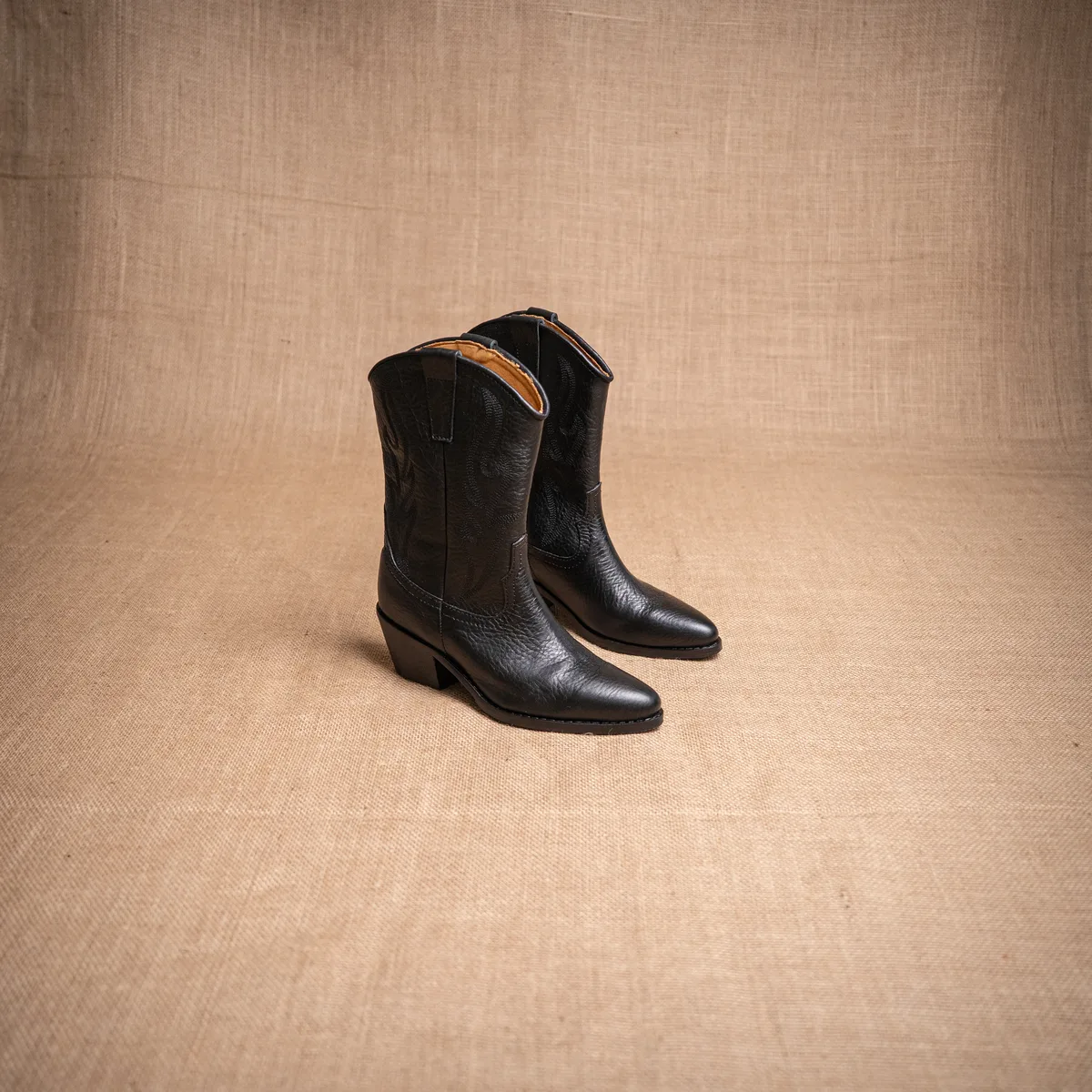 Bota Texana Media Caña. Confeccionada en cuero vacuno, incorpora bordado en el costado externo, un detalle característico del estilo texano que resalta su identidad y trabajo en el cuero. Su diseño ofrece buena estructura y comodidad, pensada para un uso firme y duradero. Está elaborada con terminaciones cuidadas y materiales de calidad, destacando el trabajo artesanal del calzado. Medidas: 24 cm de largo de la caña, 14 cm de ancho de la caña y taco de 6 cm de alto. Al tratarse de cuero natural, puede presentar variaciones de tono y textura respecto a la foto, propias del material. Si no te gusta, podés cambiarlo por otro producto.