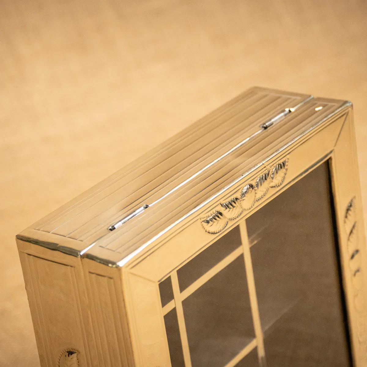 Caja de té artesanal de 9 divisiones, confeccionada íntegramente en alpaca de alta calidad con un minucioso trabajo de orfebrería manual. Sus medidas de 24x24x8 cm presentan un formato cuadrado y equilibrado, ideal para organizar y lucir una amplia variedad de hebras o saquitos con total distinción. El brillo natural del metal y la complejidad de sus grabados resaltan en cada cara, convirtiéndola en una pieza central de gran categoría para cualquier ambiente. Al ser un trabajo realizado a mano, los motivos del labrado presentan variaciones únicas que garantizan la exclusividad de cada ejemplar. Es un objeto robusto y sofisticado, pensado para quienes buscan piezas de platería tradicional con funcionalidad cotidiana. Si el producto no cumple con tus expectativas, podés realizar el cambio por cualquier otro artículo.