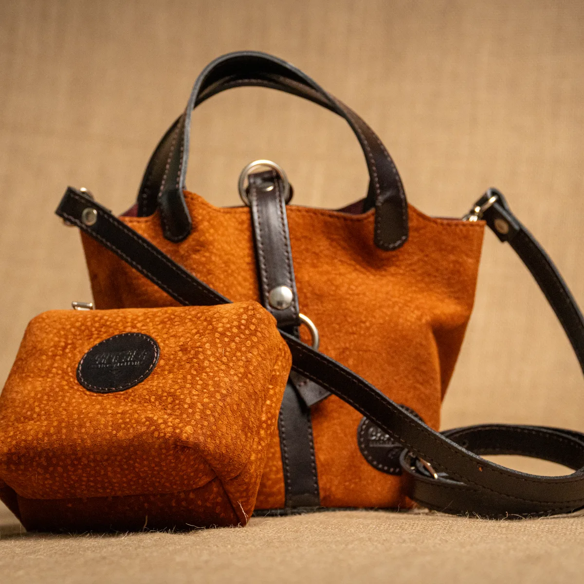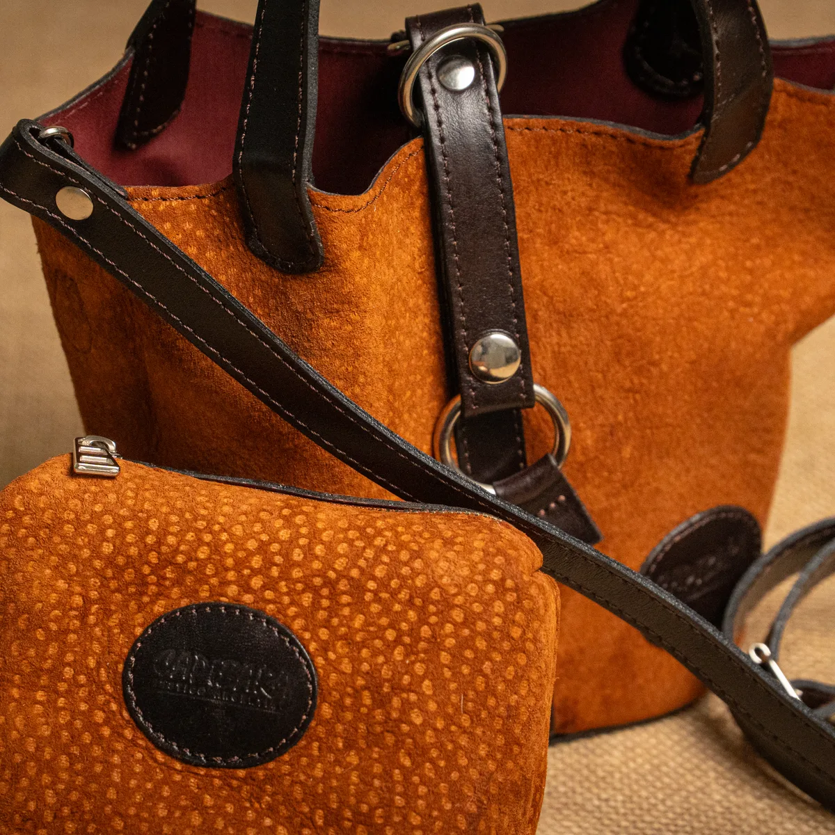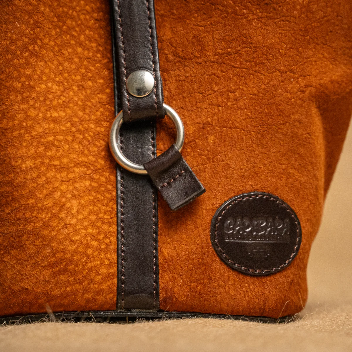 Cartera Amanecer. La Cartera Amanecer es la aliada ideal para el día a día, con un diseño práctico y elegante que se adapta a distintos estilos y momentos. Está confeccionada en 100% cuero de carpincho argentino, garantizando durabilidad y autenticidad, cuenta con cartuchera interna para mantener lo esencial siempre a mano y cierre pasador, cómodo y seguro para tus pertenencias. Medidas: cartera 22 cm alto x 30 cm ancho x 15 cm fuelle, cartuchera interna 15 cm alto x 15 cm ancho y correa larga de 120 cm. Puede presentar variaciones de tono y textura respecto a la foto, propias del cuero natural. Si no te gusta, podés cambiarlo por otro producto.