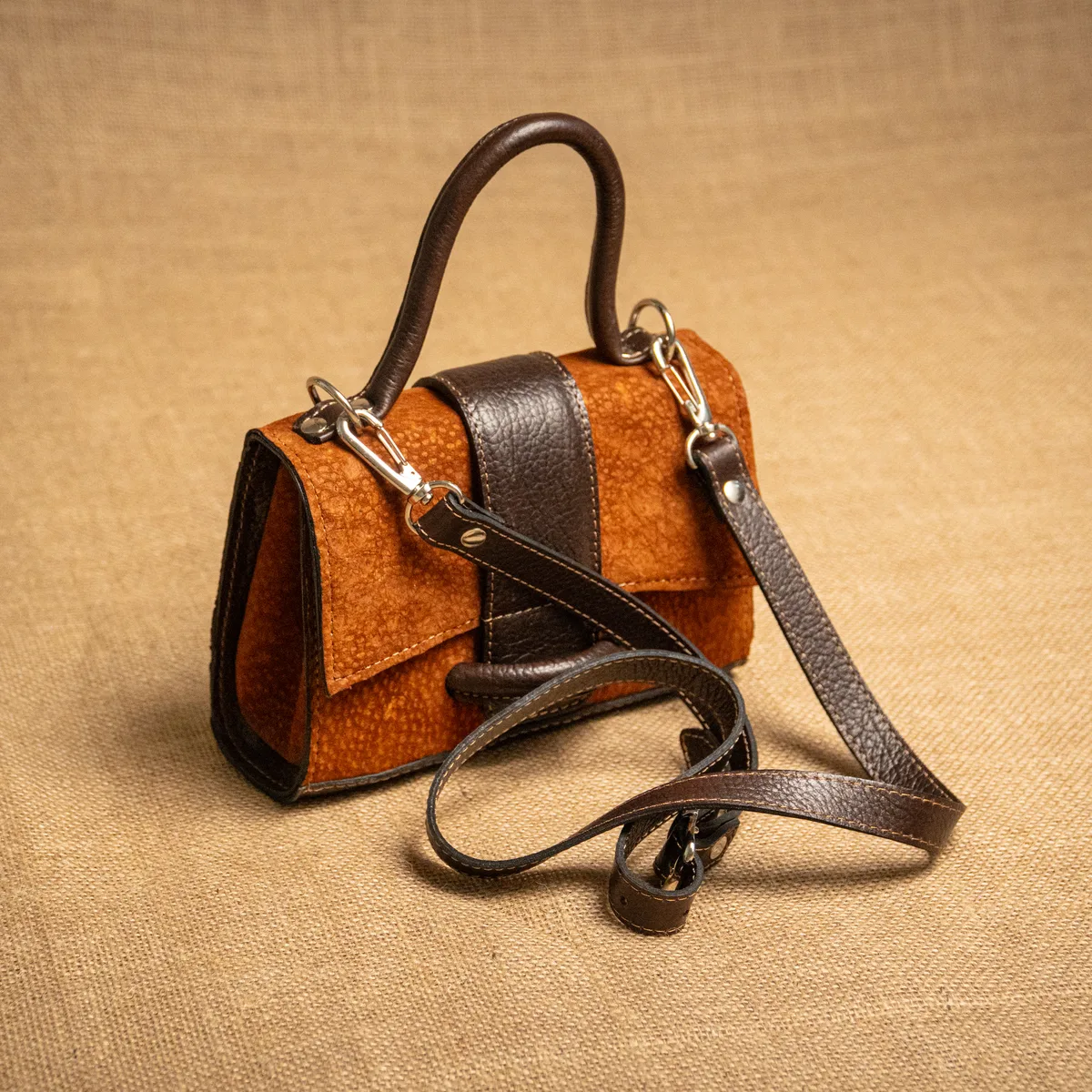 Cartera Luzca. La Cartera Luzca es la aliada ideal para el día a día, con un diseño práctico y elegante que se adapta a distintos estilos y momentos. Está confeccionada en 100% cuero carpincho argentino, garantizando durabilidad y autenticidad, cuenta con cierre e imán para mayor seguridad y comodidad, y bolsillo interno con cierre que contiene un único compartimento para organizar tus pertenencias. Medidas: cartera 15 cm alto x 20 cm ancho x 8 cm fuelle y correa larga de 120 cm. Puede presentar variaciones de tono y textura respecto a la foto, propias del cuero natural. Si no te gusta, podés cambiarlo por otro producto.
