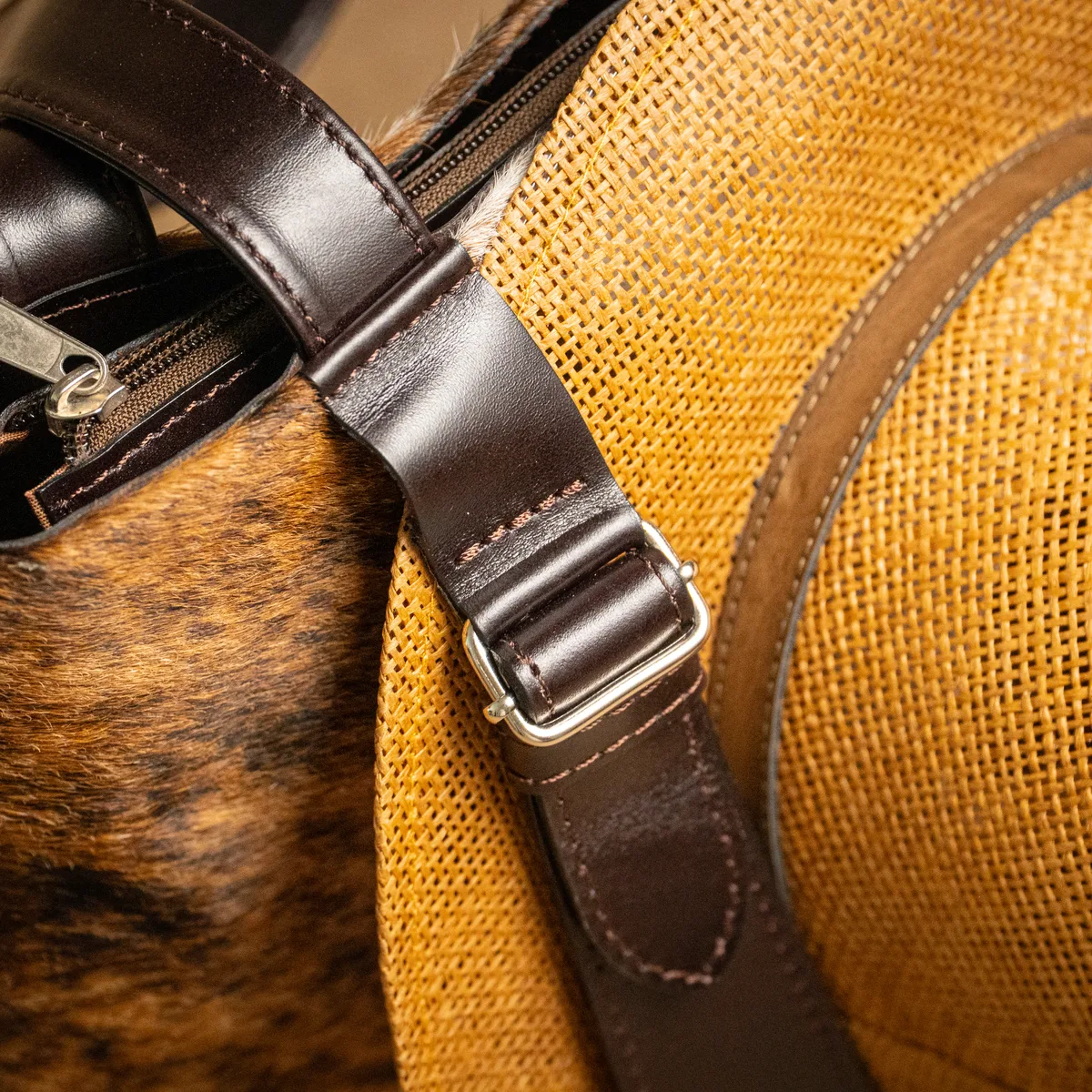 Cartera Tote Sombrero. La Cartera Tote Sombrero es la aliada ideal para el día a día, con un diseño práctico y elegante que se adapta a distintos estilos y momentos. Está confeccionada en 100% cuero vacuno argentino y pelo, garantizando durabilidad y autenticidad, cuenta con cierre para mayor seguridad y amplio espacio interior con capacidad para notebook de hasta 16 pulgadas. Incluye porta celular interno para mantener lo esencial organizado y tiras de cuero externas pensadas para llevar sombrero o campera de forma cómoda y funcional. Medidas: cartera 35 cm alto x 40 cm ancho x 10 cm fuelle, bolsillo porta celular 19 cm de largo x 11 cm de ancho y correas de 35 cm de largo. Puede presentar variaciones de tono y textura respecto a la foto, propias del cuero natural. Si no te gusta, podés cambiarlo por otro producto.