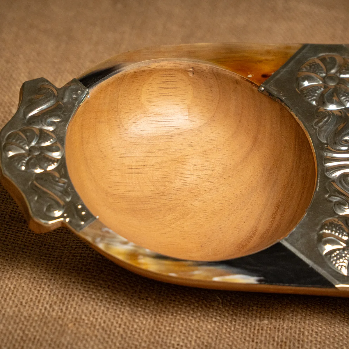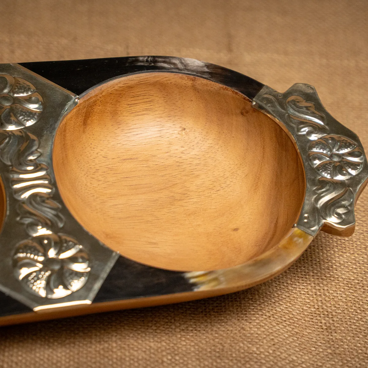 Copetinera de 2 divisiones, confeccionada en madera de pacará de alta calidad con distinguidos detalles en asta natural y alpaca cincelada. Sus medidas de 40×18 cm presentan un formato alargado y estilizado, ideal para organizar snacks o copetines con un toque regional de gran jerarquía. La estructura de pacará, valorada por su ligereza y resistencia natural al agua, se integra a la perfección con la textura orgánica del asta y el brillo sofisticado de la orfebrería artesanal. Al ser una pieza terminada a mano, las tonalidades de los materiales y los motivos del cincelado poseen variaciones únicas que garantizan la autenticidad de cada ejemplar. Es un objeto funcional y de gran presencia, diseñado para quienes buscan piezas de autor que resalten la estética de su mesa. Si el producto no cumple con tus expectativas, podés realizar el cambio por cualquier otro artículo.