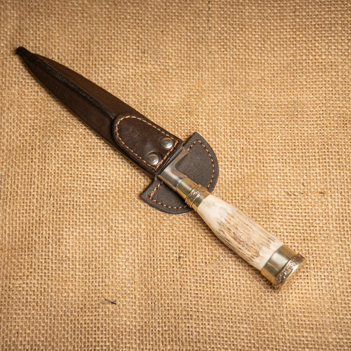 Cuchillo cabo de asta. Diseñado para quienes buscan la excelencia técnica en un formato versátil y equilibrado. Cuenta con la prestigiosa hoja marca 3 Claveles de acero inoxidable 440 de 13 cm, reconocida mundialmente por su dureza superior, retención de filo profesional y máxima resistencia a la corrosión. El cabo de asta de ciervo natural destaca por su robustez, complementado con detalles labrados en alpaca que aportan un acabado artesanal sofisticado y tradicional. Con un largo total de 25 cm, este modelo ofrece un manejo excepcionalmente cómodo y firme, ideal tanto para el uso diario como para lucirse en cualquier reunión. El conjunto se completa con una vaina de cuero legítimo de alta calidad, diseñada para proteger la pieza y facilitar su transporte. Este modelo se puede personalizar con un grabado exclusivo; para realizarlo, no dudes en consultarnos. Al ser un producto de origen natural y manufactura artesanal, el diseño del cabo puede variar, lo que garantiza que cada pieza sea única e irrepetible. Si no cumple con tus expectativas, podés realizar el cambio por cualquier otro artículo.
