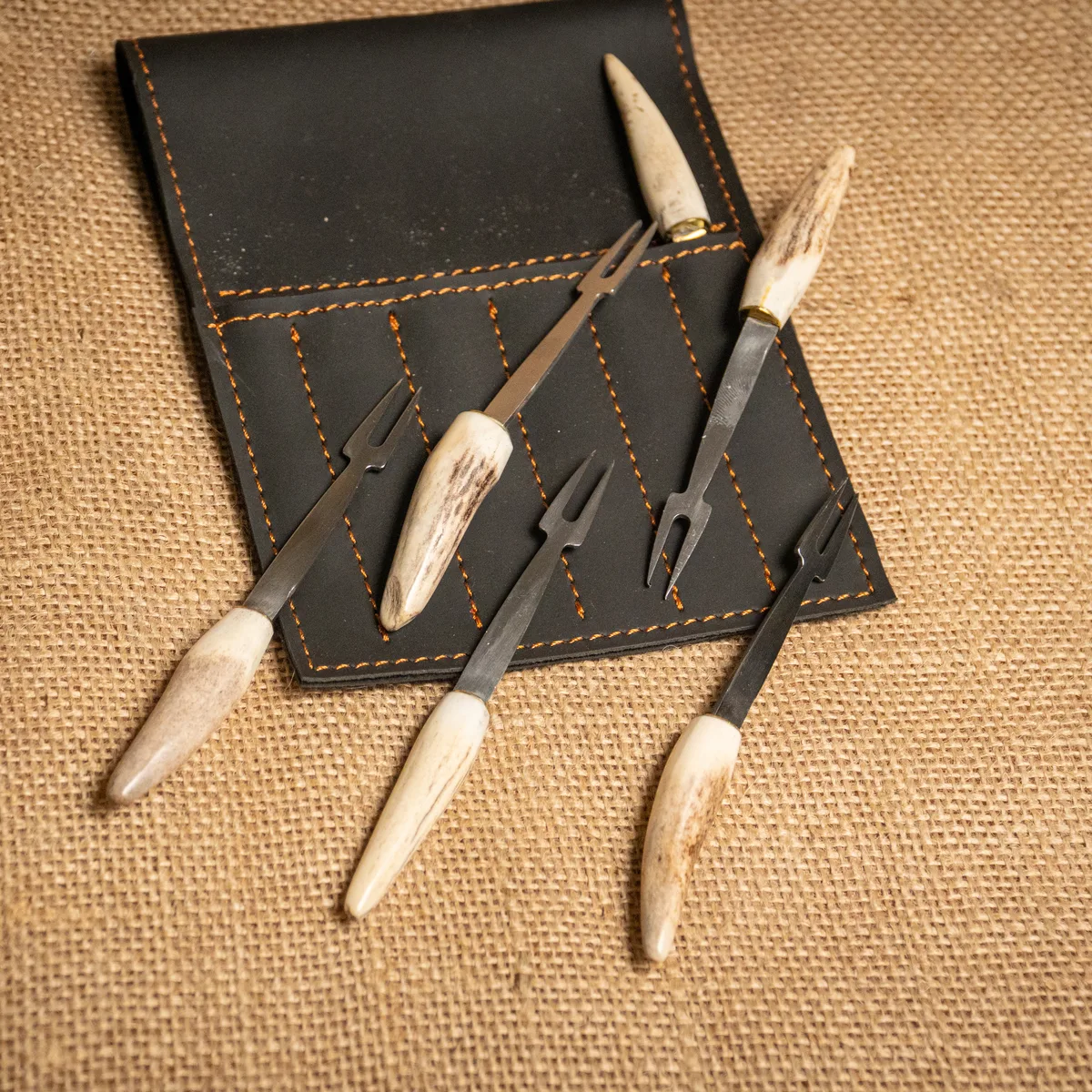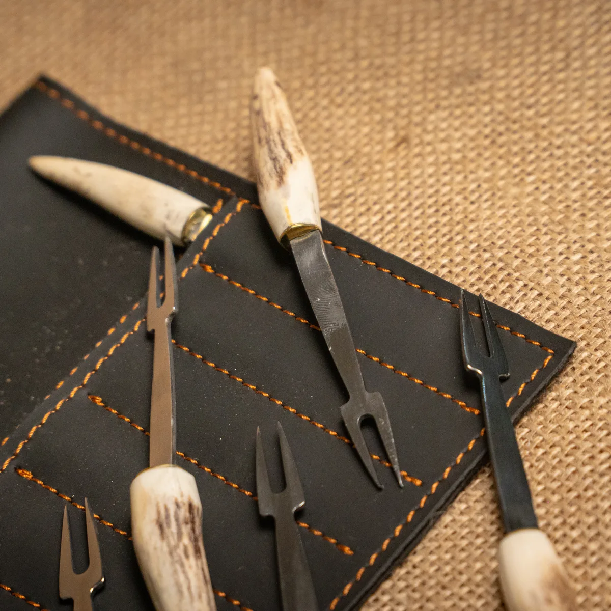 Set de 6 tenedores mini para picada, diseñados con hojas de acero inoxidable de alta resistencia y cabos de asta de ciervo natural. Cada pieza combina la funcionalidad de un corte preciso con la estética rústica y sofisticada de los materiales de origen, ofreciendo un agarre firme y un acabado artesanal de gran categoría. El uso del asta asegura que cada tenedor sea una pieza única en textura y tonalidad, convirtiendo cualquier servicio de copetín en una experiencia distintiva y elegante. Es el complemento ideal para tablas de quesos o embutidos, aportando un toque de autor a la mesa. Si el producto no cumple con tus expectativas, podés realizar el cambio por cualquier otro artículo.