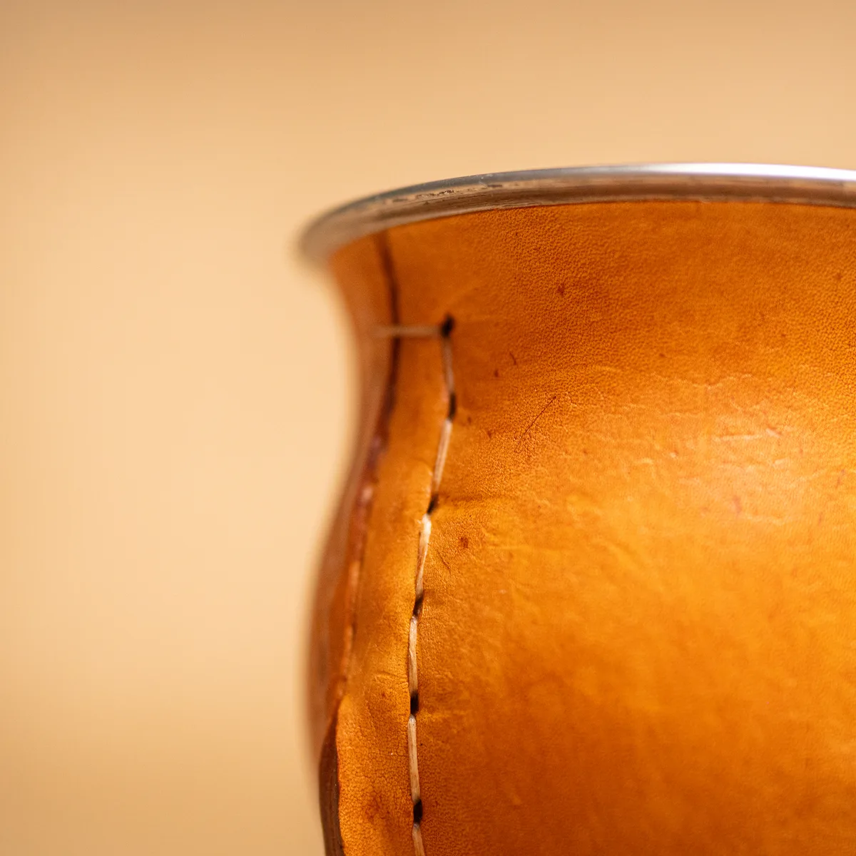 Mate Camionero de Calabaza. Una pieza robusta y de gran presencia, diseñada para quienes buscan un mate duradero y de estilo rioplatense clásico. Este modelo destaca por su calabaza seleccionada de paredes gruesas, forrada íntegramente en cuero legítimo de alta calidad, lo que proporciona un agarre firme y ayuda a mantener la temperatura. Cuenta con una virola de acero inoxidable lisa y resistente, además de 4 patas de apoyo reforzadas que garantizan una estabilidad total, ideal para viajes o uso diario intenso. Al ser un producto de origen natural, tanto el tamaño como la profundidad y las tonalidades del cuero pueden presentar variaciones, asegurando que cada pieza sea única. Este modelo se puede personalizar con un grabado exclusivo en la virola; para realizarlo, no dudes en consultarnos. Si la pieza no cumple con tus expectativas, podés realizar el cambio por cualquier otro artículo de nuestra línea.