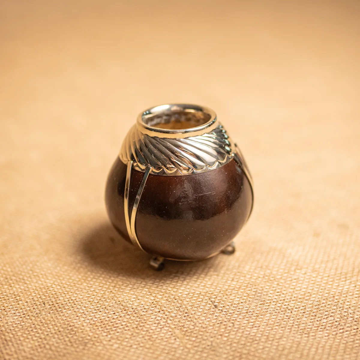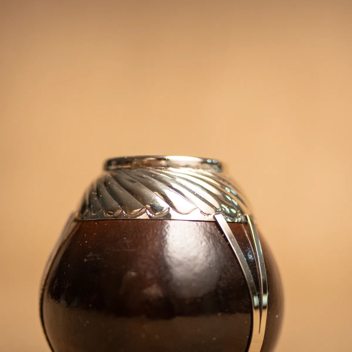 Mate de Calabaza con Fleje Ancho y Virola Cincelada. Una pieza que destaca por su diseño equilibrado y un trabajo de orfebrería superior, ideal para quienes buscan un mate tradicional con un toque de distinción artesanal. Este modelo está confeccionado con una calabaza seleccionada y pulida, garantizando el sabor más auténtico de la yerba mate en cada cebada. Su estética se jerarquiza por una virola de alpaca profundamente cincelada con motivos artesanales, unida a un fleje ancho del mismo material que recorre el cuerpo del mate, aportando una estructura sólida y elegante. El diseño se completa con pequeñas patitas de apoyo que aseguran una estabilidad perfecta en cualquier superficie. Al ser un producto artesanal de origen orgánico, tanto el tamaño como el diseño específico del cincelado en la virola pueden presentar variaciones, haciendo que cada pieza sea única. Este modelo es ideal para quienes valoran el detalle y la exclusividad en el trabajo del metal; para consultar los diseños de virola disponibles, no dudes en contactarnos. Si la pieza no cumple con tus expectativas, podés realizar el cambio por cualquier otro artículo de nuestra línea.