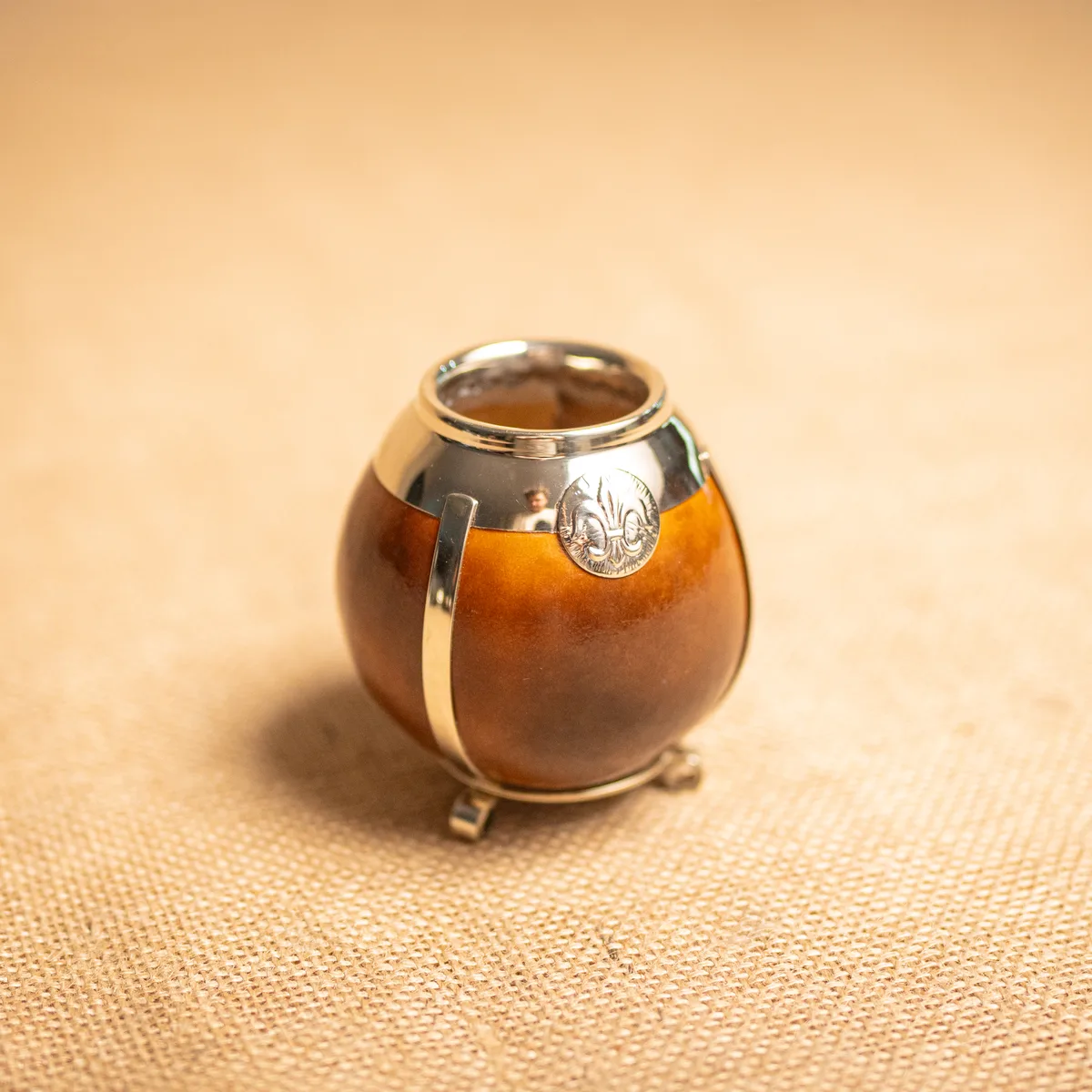 Mate de Calabaza con Fleje Ancho. Una pieza que destaca por su diseño equilibrado y sus detalles de orfebrería, ideal para quienes buscan un mate tradicional con un toque de distinción. Este modelo está confeccionado con una calabaza seleccionada y pulida, que garantiza el sabor más auténtico de la yerba mate en cada cebada.Se jerarquiza por su virola de alpaca unida a un fleje ancho del mismo material, que recorre el cuerpo del mate aportando una estructura sólida y elegante. El diseño se completa con apliques criollos en alpaca y pequeñas patitas de apoyo que aseguran una estabilidad perfecta en cualquier superficie. Es una pieza liviana y muy cómoda al tacto. Al ser un producto artesanal de origen orgánico, tanto el tamaño como la profundidad y los motivos de los apliques pueden presentar variaciones, haciendo que cada pieza sea única. Este modelo es ideal para quienes valoran el trabajo artesanal en metal; para consultar los apliques disponibles, no dudes en contactarnos. Si la pieza no cumple con tus expectativas, podés realizar el cambio por cualquier otro artículo de nuestra línea.