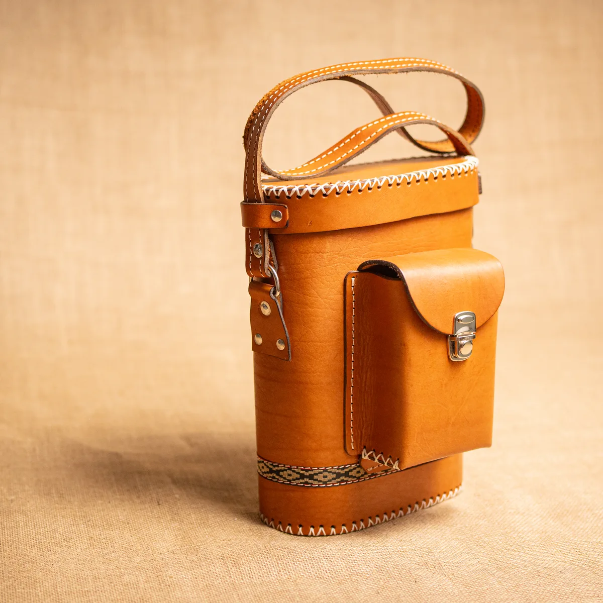 Matera Rígida con Bolsillo Externo. Esta matera está confeccionada en cuero vacuno de alto espesor, con una estructura rígida que garantiza que tu termo, mate y accesorios se mantengan siempre en su lugar, protegidos de golpes y caídas. Se destaca por su funcionalidad superior, incluyendo un bolsillo externo con cierre de seguridad (15 cm x 10 cm), ideal para llevar llaves, celular o accesorios pequeños. Su diseño cuenta con una correa reforzada de 40 cm para un traslado cómodo al hombro y detalles de costuras laterales en tiento que resaltan su esencia criolla. Con unas dimensiones de 30 cm de alto por 20 cm de ancho, ofrece el espacio perfecto para termos de gran capacidad. Al ser un producto elaborado con cuero auténtico de manera artesanal, la tonalidad y las marcas naturales de la piel pueden presentar variaciones, otorgándole a cada matera un carácter único y distinguido. Este modelo es el complemento ideal para quienes buscan durabilidad y elegancia en sus viajes; para consultar colores disponibles, no dudes en contactarnos. Si la pieza no cumple con tus expectativas, podés realizar el cambio por cualquier otro artículo de nuestra línea.