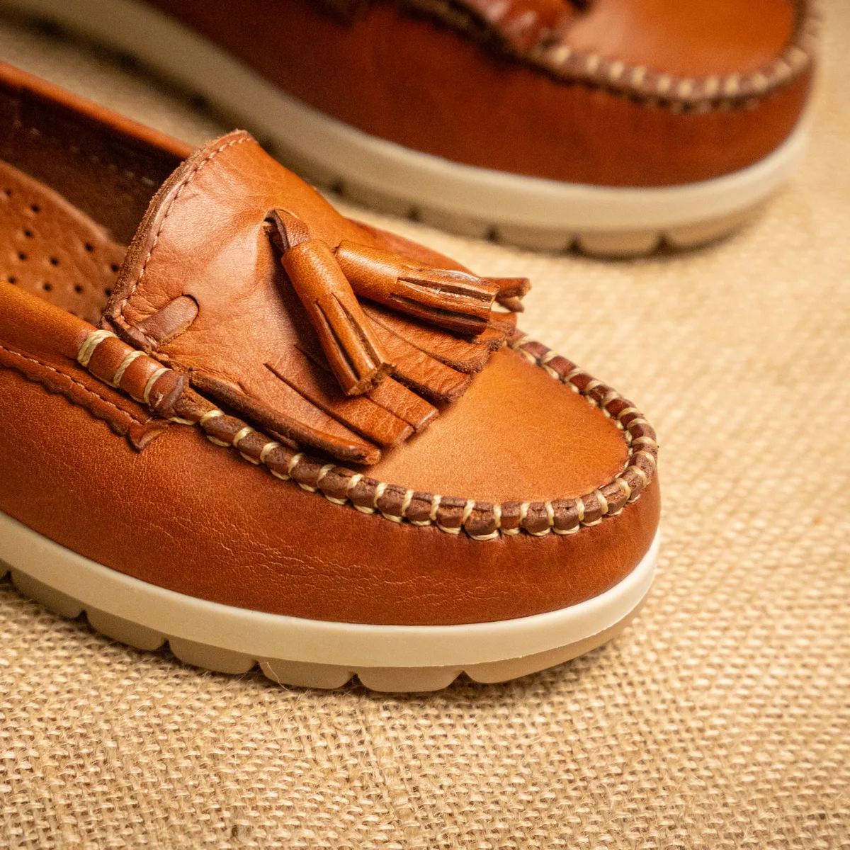 Mocasín de Dama con Flecos. Confeccionado en cuero vacuno, se destaca por su diseño clásico con flecos, que aporta un estilo distintivo y versátil para distintos looks. Cuenta con suela de goma de 2 cm de alto, brindando mayor comodidad, estabilidad y resistencia para el uso diario. Está elaborado de forma artesanal, resaltando la calidad del cuero y las terminaciones de cada par. Al tratarse de cuero natural, puede presentar variaciones de tono y textura respecto a la foto, propias del material. Si no te gusta, podés cambiarlo por otro producto.